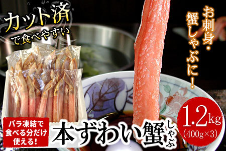 [12月21日決済分まで年内配送]【生食可・カット済・棒肉のみ】ずわいかにしゃぶ1.2kg F-07015