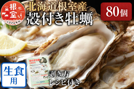 【年内配送可】【北海道根室産】貝付き牡蠣80個[11月上旬以降発送] D-54008