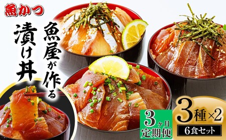 【3ヶ月 定期便】 魚かつ自家製 山口の海鮮漬け丼(はまち、ひらまさ、マグロ系等)3種×各2パック入 酒の肴に海鮮丼に茶漬けに飯ともに