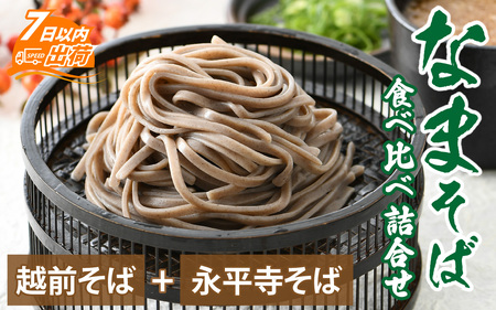 ■容量 なまそば食べ比べ詰合せ 合計10食 越前そば:(なま110g×2、めんつゆ20ml×2)×2袋 永平寺そば:(なま100g×3)×2袋 めんつゆ20ml×6袋 ■原材料 越前そば:[めん]そば粉(福井県産)、小麦粉、小麦たんぱく、山芋粉、食塩、醸造酢/加工でんぷん(打ち粉)、(一部にそば・小麦・山芋を含む)[つゆ]しょうゆ、砂糖(果糖ぶどう糖液糖、砂糖)、醗酵調味料、食塩、削りぶし(かつお、さば)/調味料(アミノ酸等)、カラメル色素、酸味料、ビタミンB1、(一部に小麦・さば・大豆を含む) 永平寺そば:小麦粉(国内製造)、そば粉、小麦たんぱく、山芋粉、醸造酢、食塩 つゆ:しょうゆ、砂糖(果糖ぶどう糖液糖、砂糖)、醗酵調味料、食塩、削りぶし(かつお、さば)/調味料(アミノ酸等)、カラメル色素、酸味料、ビタミンB1、(一部に小麦・さば・大豆を含む) ■本品に含まれるアレルギー表示28品目 小麦、そば、さば、大豆、やまいも ■賞味期限 出荷日より14日以内