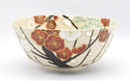 金彩 紅白梅紋大鉢【水間焼伏原窯】