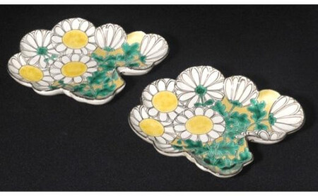 乾山写 菊型向付 2枚【水間焼伏原窯】