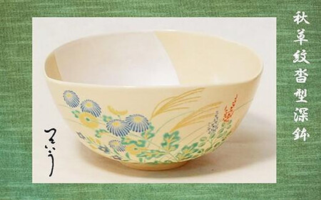 色絵 秋草紋沓形深鉢【水間焼伏原窯】