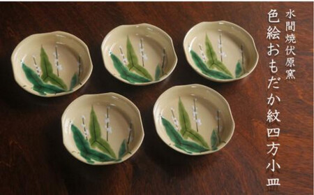 色絵おもだか紋四方小皿5枚【水間焼伏原窯】