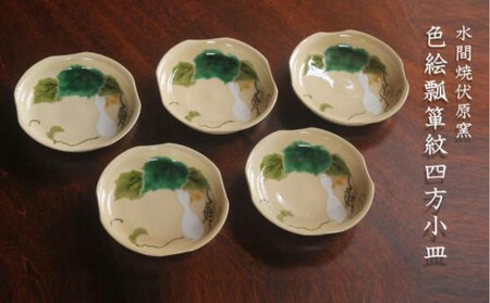色絵瓢箪紋四方小皿5枚【水間焼伏原窯】