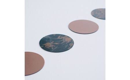 墨流しコースター ・1枚(直径10cm) ◆天然木を使用しておりますので、木目や色などはお選びいただけません。 ◆墨流しの特性上、柄はランダムとなります。あらかじめご了承くださいませ。 ◆写真はイメージです。