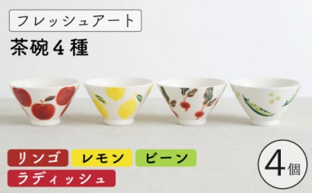 【波佐見焼】フレッシュアート 茶碗 4柄セット〈リンゴ・レモン・ビーン・ラディッシュ〉 [OAQ042]