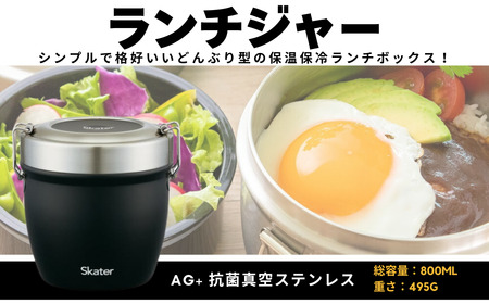 抗菌真空ステンレス丼ランチジャー 800ml 2段 ブラック スケーター 弁当箱 保温 保冷 11-051