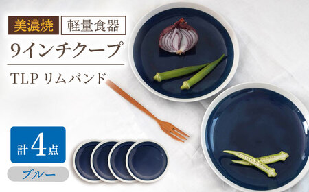 【美濃焼】[軽量食器] TLPリムバンド ブルー 9インチ クープ×4枚 セット【井澤コーポレーション】食器 皿 プレート [TBP099]