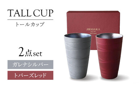 【美濃焼】トールカップ ペアセット ガレナシルバー・トパーズレッド 【二幸】フリーカップ コップ ビール[MCZ116]