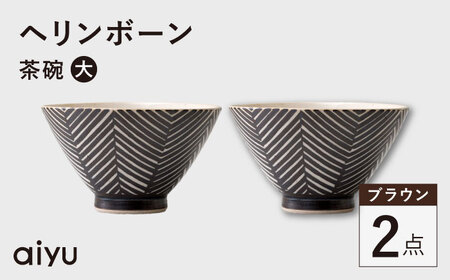 【波佐見焼】ヘリンボーン 茶碗(大) 2点セット ブラウン【アイユー】[UA54]