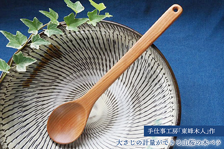 手仕事工房「東峰木人」作-大さじの計量ができる山桜の木ベラ H32