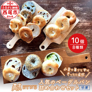 プレーンベーグル 2個 全粒粉ベーグル 2個 シナモン&レーズンベーグル 1個 チョコ&ヘーゼルナッツベーグル 1個 抹茶&ホワイトチョコベーグル 1個 トマト&ブラックペッパーベーグル 1個 黒ゴマチェダーチーズベーグル 1個 黒ゴマ大納言小豆ベーグル 1個 製造地 全て愛知県西尾市