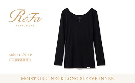 【ブラック Lサイズ】リファ バイタルテック モイストリブ Uネックロングスリーブインナー