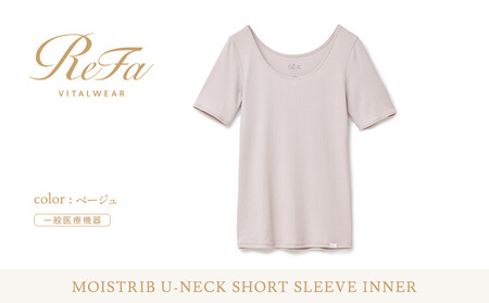 【ベージュ Mサイズ】リファ バイタルテック モイストリブ Uネックショートスリーブインナー