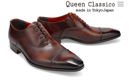 クインクラシコ 革靴 10001 (カラー:ブラウン、サイズ:25.0cm) ビジネスシューズ 本革 ストレートチップ 幅広 甲高 キャップトゥ エラスティック スリッポン 牛革 フォーマル