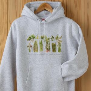 世界で唯一!着る山菜!!【山菜図鑑パーカー・アッシュ】裏起毛 トレーナー ファッション メンズ レディース 洋服 新潟 Mサイズ