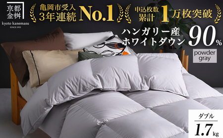 2枚合わせ人工羽毛掛ふとん ダブル(190×210cm・2枚合わせ)×1 中綿量/(D)1,000g+600g ※四隅と幅・長さの真ん中の8箇所に、カバー紐を結べるループがついています。 【素材】 側生地/ポリエステル80% 綿20%・中綿/ポリエステル100%(エアーフレイク(R)) 【加工地】 広島県福山市