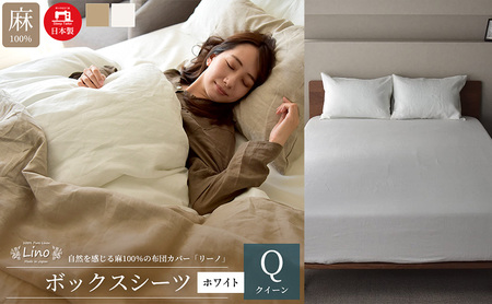 麻100% リネン ボックスシーツ クイーンサイズ ホワイト 「リーノ」