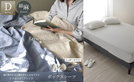 日本製 ボックスシーツ ダブルサイズ リネン&コットン 綿 麻 レイユール・ブレンド 「シュガーホワイト」 寝具