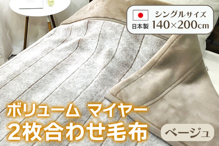 ボリューム マイヤー2枚合わせ毛布 シングル ベージュ JY-2401BE [4790]