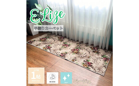 クラシックフラワーラグ サイズ:約88×176cm 1帖サイズ カラー:ベージュ 組成:表 ナイロン100% 裏 不織布 製造国:日本