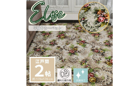 耐久性のある花柄抗菌カーペット 2帖 サイズ:約176×176cm 2帖サイズ カラー:ベージュ 組成:表 ナイロン100% 裏 不織布 製造国:日本