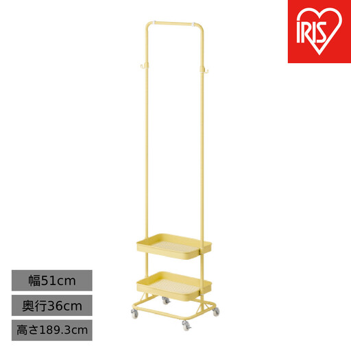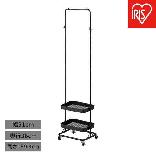 ●製品サイズ(cm) 幅約51×奥行約36×高さ約113.1/138.5/163.9/189.3(キャスター含む) ●製品質量 約4.7kg ●耐荷重 かご1段あたり:約10kg ハンガーバー:約10kg フック:約1kg 全体:約32kg ●主要材質 本体:金属(鋼)(エポキシ樹脂塗装) キャスター:ポリプロピレン ※耐荷重は測定値であり、保証値ではありません。