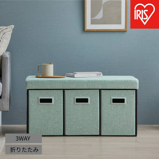 ●製品サイズ(cm) 使用時外寸:幅約76×奥行約37.5×高さ約38.5 座面の高さ:約38.5 本体内寸:幅約72.5×奥行約33.5×高さ約33.5 引き出し(1個あたり)内寸:幅約22.5×奥行約33×高さ約30 折りたたみ時:幅約76×奥行約37.5×高さ約13 ※破損する恐れがあるため、収納ボックスとして使用するときは座らないでください。 ●製品質量 約9.5kg ●構造部材 繊維板 ●張り材 ポリエステル ●クッション材 ウレタンフォーム ●耐荷重 収納ボックス時:天面約10kg/引き出し(1個あたり)約3kg スツール時:約80kg ※耐荷重は測定値であり、保証値ではありません。