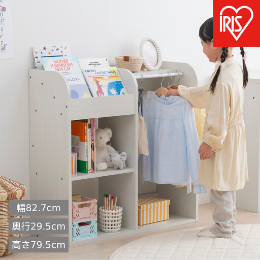 ●商品サイズ(cm):幅82.7×奥行29.5×高さ79.5 ●商品重量(kg):16.7 ●耐荷重(約):全体30kg、上部棚板1段あたり3kg、棚板1枚あたり3kg、底板10kg、ハンガーパイプ5kg●ワードローブ上棚板サイズ(約):390×130mm●ワードローブ内寸(約):390×276mm●ハンガーパイプ下の高さ(約):715mm●上部本棚内寸(約):389×79mm●中部本棚内寸(約):188×246×262mm●下部オープンスペース内寸(約):389×276×282mm