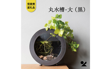 【信楽焼・明山】丸水槽・大(黒)aqua-06s