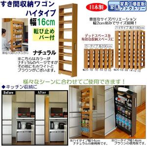 【ナチュラル × 幅 16cm】すき間収納ワゴン ハイタイプ 転び止めバー付き