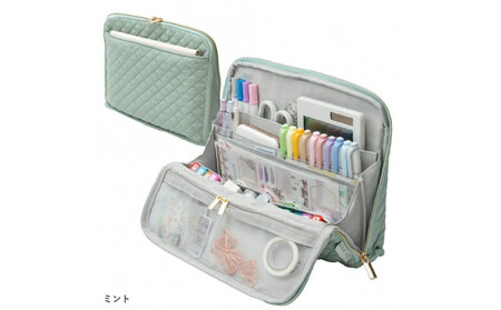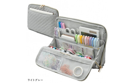 文具ギフト ニックナック・アレンジメント :1個 【セット内容】 ・クリアファイル ・レターセット ・えんぴつキャップ ・シール ・鉛筆削り ・消しゴム ・ハンカチ ・紙せっけん ・ペン&ポーチ ・えんぴつ ・定規 ・電卓 各1点ずつ