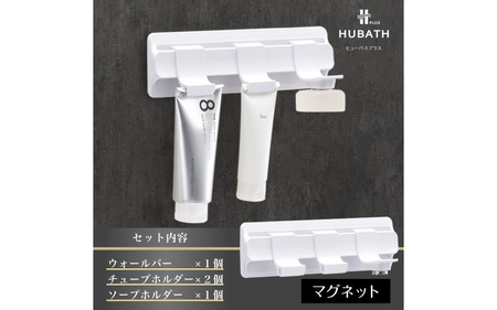 ◆商品内容◆ ────────────── ■HUBATH PLUS マグネット式Cセット カラー:ホワイト 【HUBATH PLUS マグネット式ウォールバー:1個】 ・サイズ 外寸:外寸:約29.8(横)×2.3(奥行)×8.5(高さ)cm (外寸は一番大きな外側部分の寸法です) ・材質 (本体):ABS樹脂 ・材質(マグネット):ラバーマグネット ・耐熱温度 60度 ・耐荷重 3kg 【HUBATH PLUS チューブホルダー:2個】 ・サイズ 外寸:約4.5(幅)×3.5(奥行)×6.9(高さ)cm (外寸は一番大きな外側部分の寸法です) ・材質 (本体):ABS樹脂 ・耐熱温度 70度 ・耐荷重 300g(吊り下げチューブ重量) 【HUBATH PLUS ソープホルダー:1個】 ・サイズ 外寸:約4(幅)×6.7(奥行)×6.3(高さ)cm (外寸は一番大きな外側部分の寸法です) ・材質 (本体):ABS樹脂、ネオジム磁石 ・材質 (金具):ステンレス ・耐熱温度 60度 ・耐荷重 130g(吊り下げ石鹸重量)