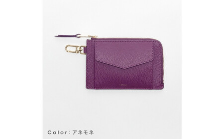 カラー:アネモネ 【サイズ】横:13.5cm 縦:9cm 厚さ:1.6cm 【重量】約100g 【素材】本革(フランス カーフレザー HAAS社 DERBY) ゴールドオリジナルファスナー使用 【収納】メインポケット、小銭入れ、カードポケット(内側×3、外側×4)、フリーポケット(外側×1、外側×1)、ナスカン付き