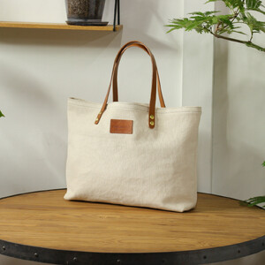 ■カラー キナリ ■素材 生地:帆布 持ち手:ヌメ革 カシメ:真鍮 ■商品サイズ サイズ: タテ 31 x ヨコ(上/下) 48/38 xマチ 10 (cm) 持ち手の長さ: 約 45 (cm)
