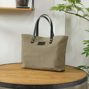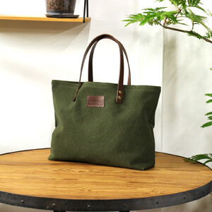 大きなメンズトートバッグ カーキ帆布×茶色[1個] サイズ:縦30cm 横45cm マチ14cm