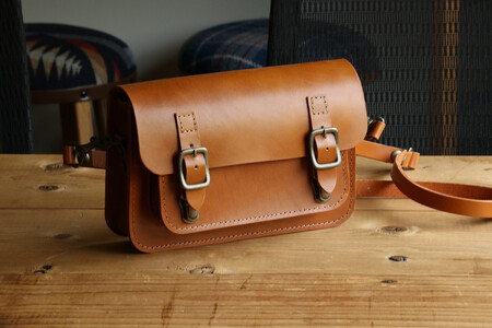 <サイズ> ・メイン収納部 縦 25cm x 横 14cm x マチ 5cm 小型ながらペットボトル500ml収納可能 ・重量 約300g ・ショルダーベルト 70cm~125cm(可変式) (こども用にはベルトを短くして作る事も可能) *ファスナーの色は、ベルトと同色 本体、背面、ショルダーベルトの組み合わせ (本体/背面/ベルト) ・紅/カーキ/カーキ *柿渋染帆布や一般の帆布でも製作可能です。工房に問合せ下さい。