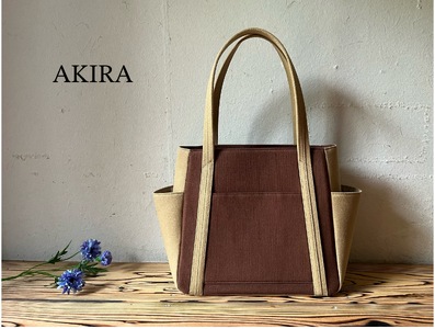 【 AKIRA オリジナル】【 マツコの知らない世界 で紹介されました!】 中型レディストートバッグ ダブルポケット ダークブラウン帆布×ベージュ 軽量 軽い 日本製 キャンバス 帆布 横型 肩掛け 通勤 通学 大容量 上質 カジュアル オシャレ レディース カバン 鞄 バック