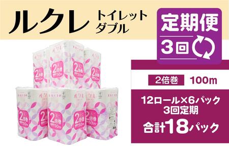 【3回定期便】ルクレ FSCR認証 トイレットペーパー 2倍巻 ダブル 50m 72R