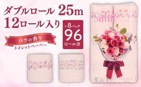 トイレットペーパーダブル 12ロール×8パック (1個寸法:25m×108mm) ローズの香り