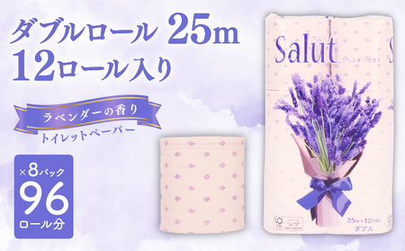 トイレットペーパーダブル 12ロール×8パック (1個寸法:25m×108mm) ラベンダーの香り