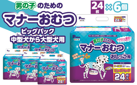 【ふるさと納税】PMO-709_男の子のためのマナーおむつビッグパック中型犬から大型犬用24枚×6