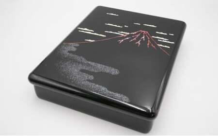 A4浅文庫 赤富士(貝入)黒 サイズ(約):25.3×33×6cm/木製・MDF/カシュ塗 製造地:富山県高岡市
