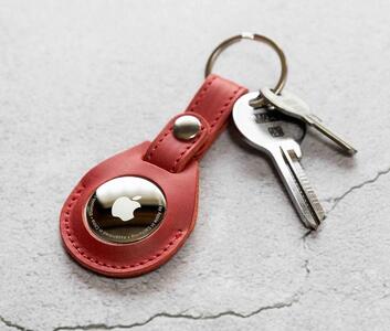 エアタグ用 キーホルダー カバー レザー 本革 キーリング apple airtag 【レッド】