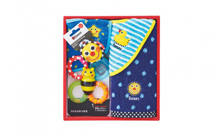 カラー:ブルー メーカー型番:GFSA7352 原産国/製造国:中国 対象:おたんじょうから(歯固めのみ3カ月から) サイズ: ウォッシュタオル:約34×34cm/ 重量42g、 ビブセット:首周り27cm・29cm(2段階サイズ調節可能)/首下14.1cm/幅22.2cm/重量23g×2、 ラトル:約W7×D2.5×H16.5cm/重量8.6g、 歯固め:W10.5×D3.7×H12.2cm/重量55g 素材: ウォッシュタオル、ビブセット:綿100%、 ラトル:ポリエステル/ナイロン、 歯固め: ABS樹脂/ポリプロピレン/EVA樹脂/熱可塑性エラストマー