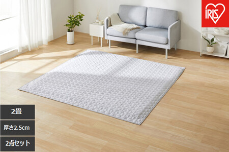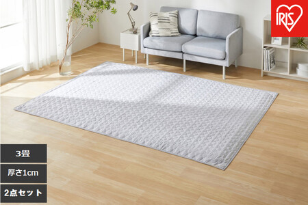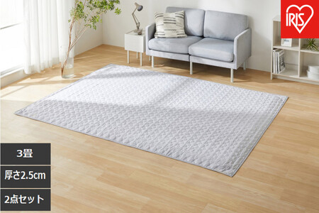 はがして洗える Hagashラグ セット 杢キルト 2.5cm HAGSM25-1824 グレー