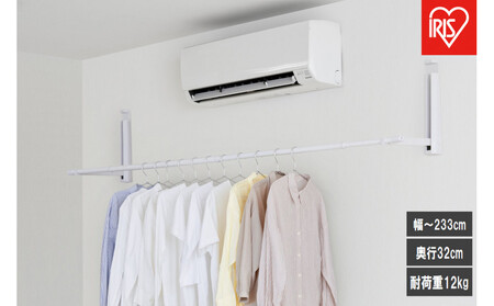 ●製品サイズ(cm) カバー+本体(使用時):幅約66.9×奥行約37.3×高さ約40.4 伸縮竿:長さ約163~255 ●製品質量 約2.6kg ●耐荷重(全体) 約12kg ※耐荷重は測定値であり、保証値ではありません。 ●主要材質 スチールパイプ(エポキシ樹脂塗装)、ステンレス巻きスチールパイプ(エポキシ樹脂塗装)、スチール(亜鉛メッキ)、アルミ(エポキシ樹脂塗装)、ABS樹脂、ポリプロピレン、SBR樹脂、ステンレス ●必要工具 +ドライバー(サイズ:2番) ※インパクトドライバーは使用しないでください。破損するおそれがあります。 ※2人以上での組み立てをおすすめします。 【ご注意】 ※本製品は石膏ボード専用です。コンクリート、土壁などには設置できません。 ※洗濯物はバランスよく掛けてください。掛け方が片寄ると破損する恐れがあります。 ※壁付けパーツ間の距離は、149cm~233cm以内になるように設置してください。 ※設置する高さは、ご使用の環境に合わせて伸縮竿がカーテンレールの上に来るように設置してください。 ●保証期間:お届けより1年間