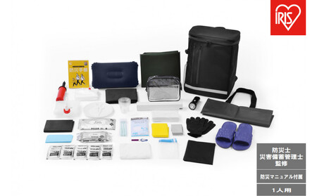 ●商品サイズ(cm) 幅約34×奥行約17.5×高さ約45 ●製品重量 約3.6kg ●収納重量 約10kgまで ※収納重量は測定値であり、保証値ではありません。 ●セット内容 【寝具、防寒】 エア枕 エアベッド ポンプ アルミマット アルミブランケット 【食事】 紙皿、プラコップ スプーンフォーク ウォータータンク5L ラップ 【移動】 ポンチョ 軍手 【衛生用品】 歯ブラシ×3本 ティッシュペーパー マスク トイレ用ポンチョ 携帯用トイレ凝固剤×15回分 長期保存からだふき 長期保存ウェットティッシュ 【照明】 懐中電灯ランタン(乾電池別売り) 【その他】 ホイッスル EVAスリッパ ポーチ タオル ポリ袋 衣類圧縮袋 マルチバッグ 防災手帳 ●保証期間:お届けより1年間