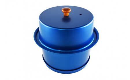 色:ノルディクブルー 重量:387g 外寸:組立時/φ195mm 高さ180mm 素材名:鍋本体・蓋・底皿/アルミ ツマミ/木材 金網/ステンレススチール